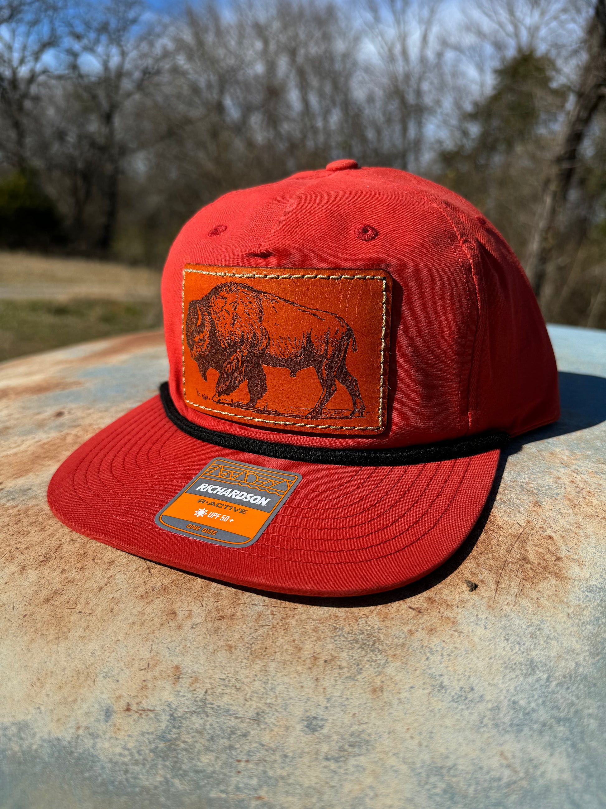 This classic Buffalo Cap is sure to make a statement! Featuring a laser engraved leather patch, this cap is sure to stand out. All caps are Richardson Brand.